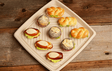 Auch Restaurants können ab sofort übrig gebliebene Speisen wie Pasta oder Burger nachhaltig einpacken und den Gästen mitgeben. Für ein nachhaltiges Catering eignen sich besonders gut Servierplatten und unterschiedlich grosse und kleine flache Schalen. Auf Mini-Tellern kommen kleine Köstlichkeiten edel zur Geltung.