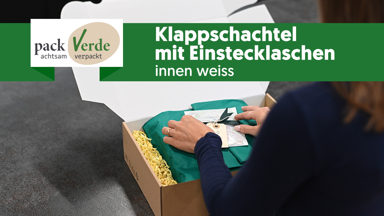 Nachhaltiges Auspacken, das Eindruck hinterlässt – die Klappschachtel mit Einstecklaschen, innen weiss