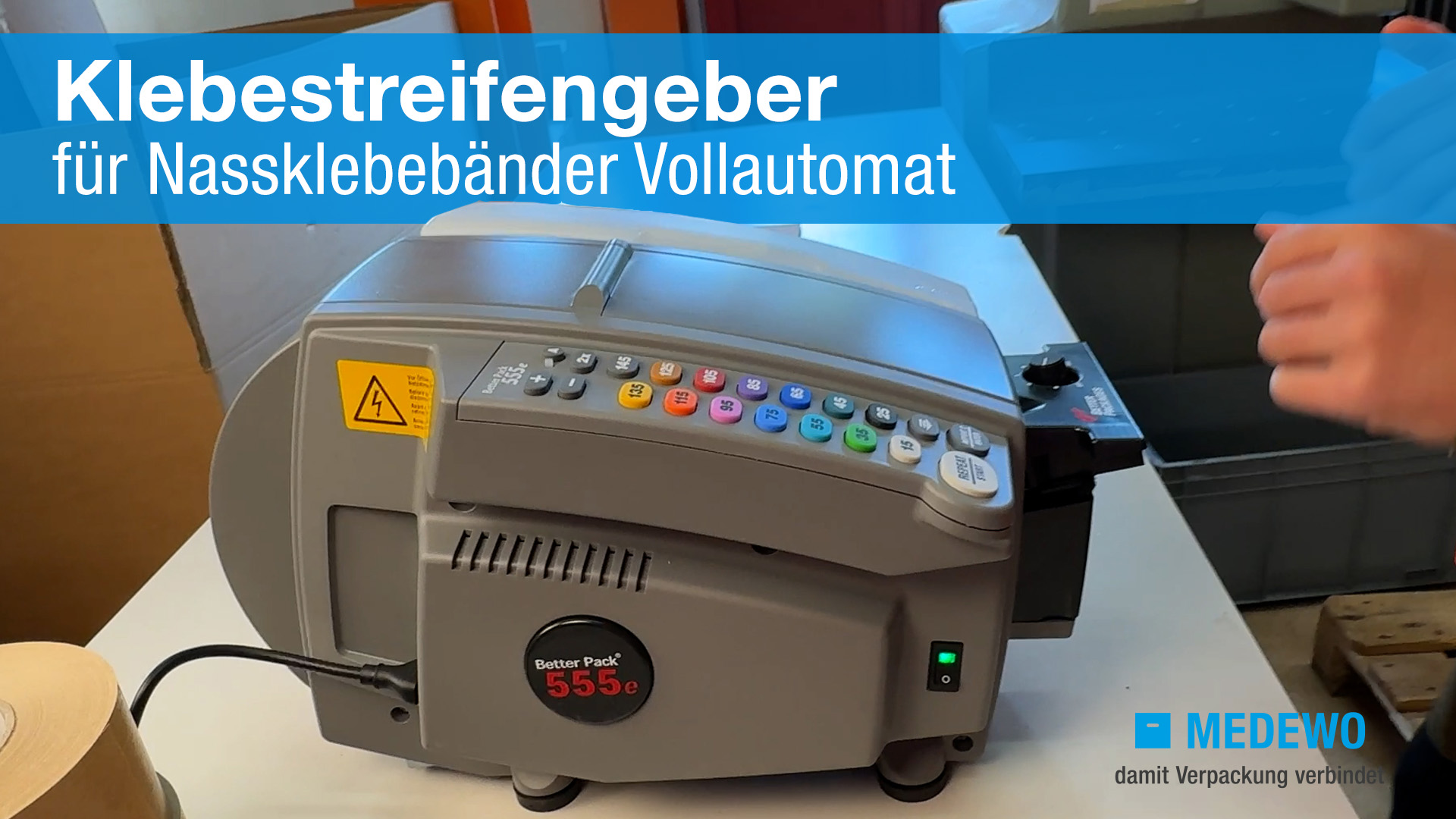 Effizient, modern & vollautomatisch verpacken – mit dem Klebestreifengeber für Nassklebebänder abmessen, befeuchten & schneiden